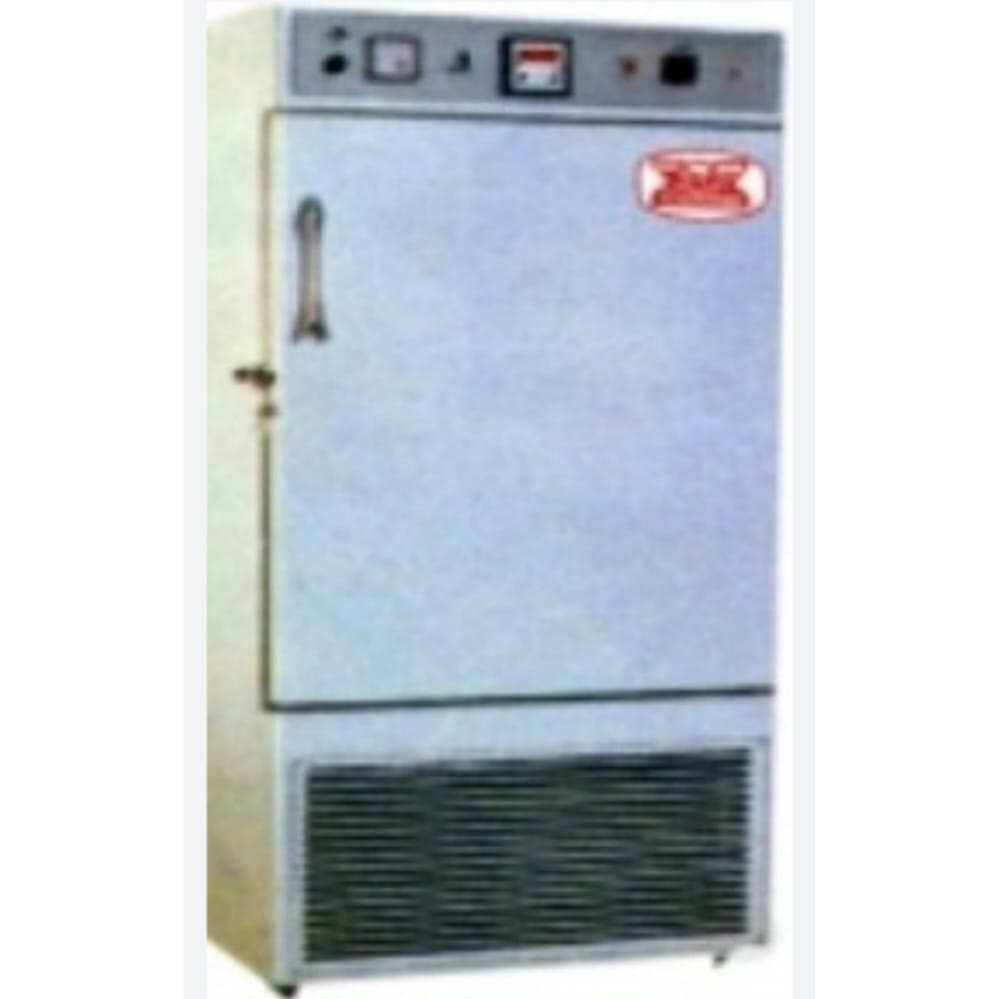 B.0.D. Incubator (Low temperature Incubator Deluxe Automatic): Temperature range varies from 5°C to 50°C adjustable at any desired point by means of a high precision double action thermo regulator within the variation of ±l°C. Two air circulating fans have been provided to keep the temperature uniform inside the chamber. Inner chamber is fabric ated from thick anodized aluminium/stainless steel sheet & outer body mild steel sprayed in beautiful white stove enamel finish. Complete with automatic internal light, built in thermometer, indiction lamps & anodized aluminum /stainless steel.