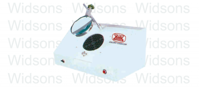 COLONY COUNTER (For Counting Bacterial Colonies): The instrument provides standard illumination and magnification to assure results of the highest accuracy. The colonies and the ruling of the counting plate appear intense and sharply defined. A counting plate with standard wolf huger ruling is fitted with the apparatus. Electrically operated on 220 volts.