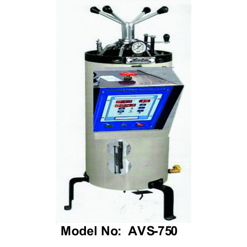Autoclave Steam Sterilizer-Vertical (Triple walled) steam jacketed for microbiological laboratories: Triple walled chamber, full body made of stainless steel 304. Jacket is insulated with high grade glass wool to minimize the heat loss. All sterilizers are hydraulically tested. The lid is also made of thick stainless steel plate with radial locking system, complete with digital control panel with mains & heater switch.