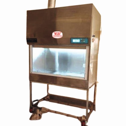 Biosafety Cabinet Class II A2 type Size 4Feet X 3feet X 2feet width with Digital Microprocessor Control System for Operating Fluorescent, UV Light and blower sliding front window Main body of BSC will be made of electro-galvanized steel with epoxy polyester (antimicrobial Powder-coated finish), fabricated from 18 gauge. Work Zone will be made of single piece polished Stainless steel Type 304.