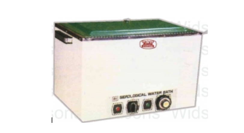 BATH SEROGICAL (Variable Temperature) Double walled with specia l insulating material, chamber made of stainless steel and outside mild steel, painted with beautiful white stove enamel. Thermostatically controlled with sensitive thermostate with an accuracy of ±0.5°C.Supplied with gable type cover without racks & thermometer.